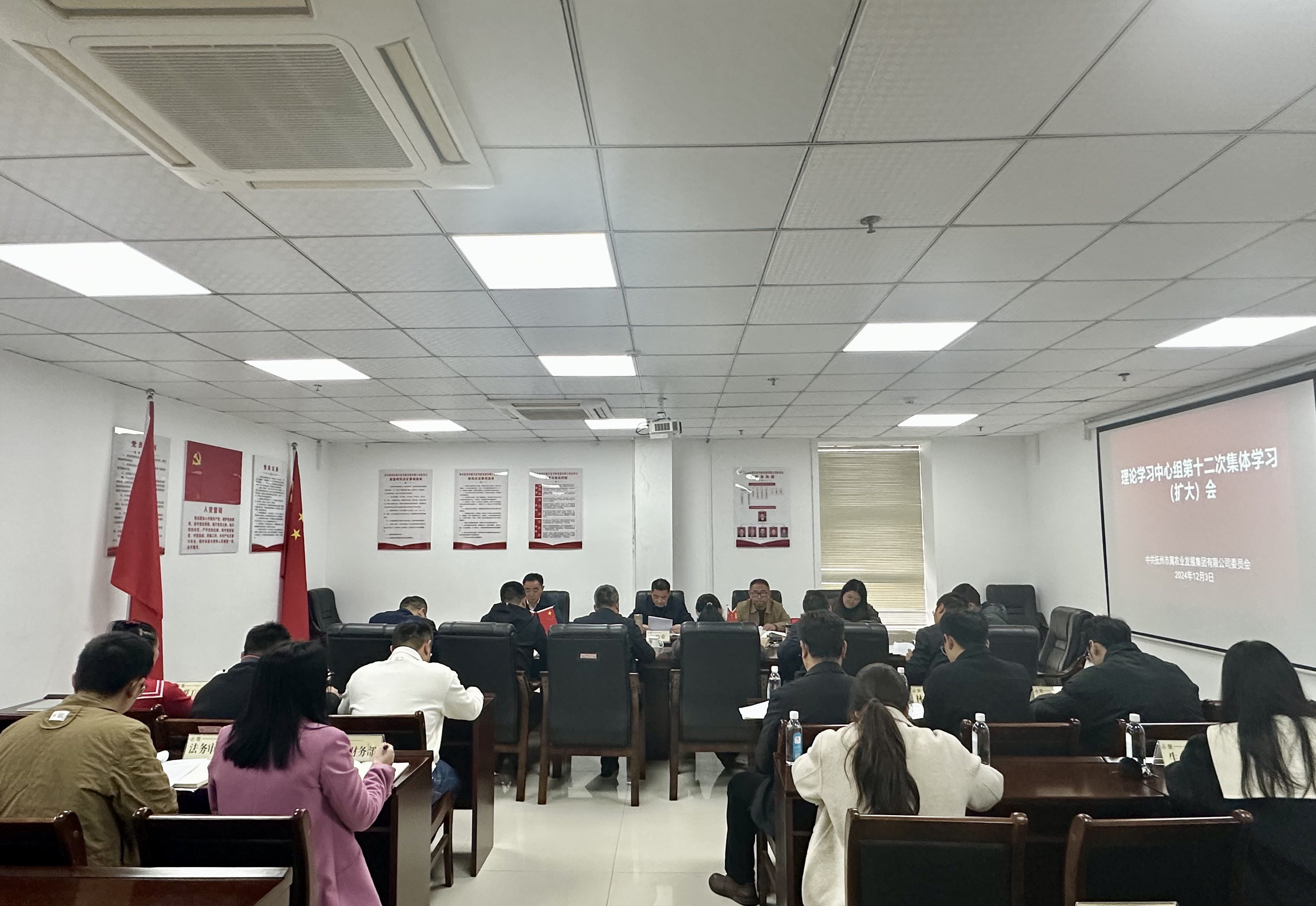 12月3日下午,市農(nóng)發(fā)集團(tuán)黨委召開2024年第十二次理論學(xué)習(xí)中心組集體(擴(kuò)大)學(xué)習(xí)會(huì),市農(nóng)發(fā)集團(tuán)黨委書記、董事長王柏榮主持并講話,黨委班子成員胡建軍、萬福興、吳娓、周明剛,財(cái)務(wù)總監(jiān)楊坤,法務(wù)總監(jiān)王懷軍,總經(jīng)理助理韓全輝及各部門、子公司負(fù)責(zé)人參加。市國資委三級(jí)調(diào)研員紀(jì)遠(yuǎn)、市國資委辦公室副主任王佩旁聽指導(dǎo)。